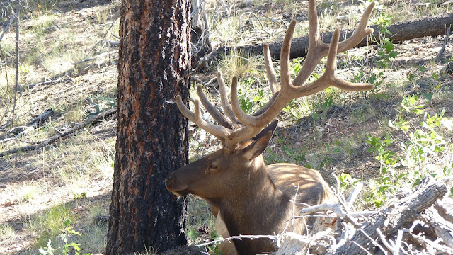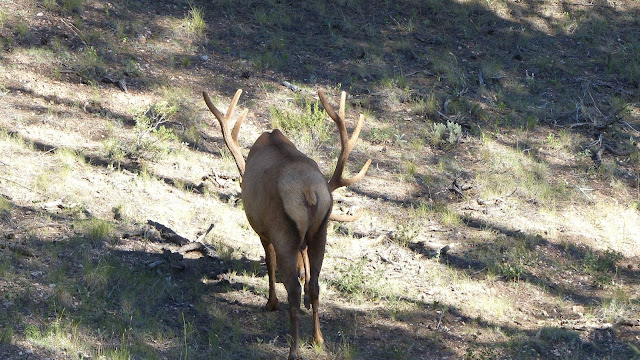 Sur la route, des tas de voitures arrêtées pour voir…  une espèce de cerf, toujours au grand canyon !
