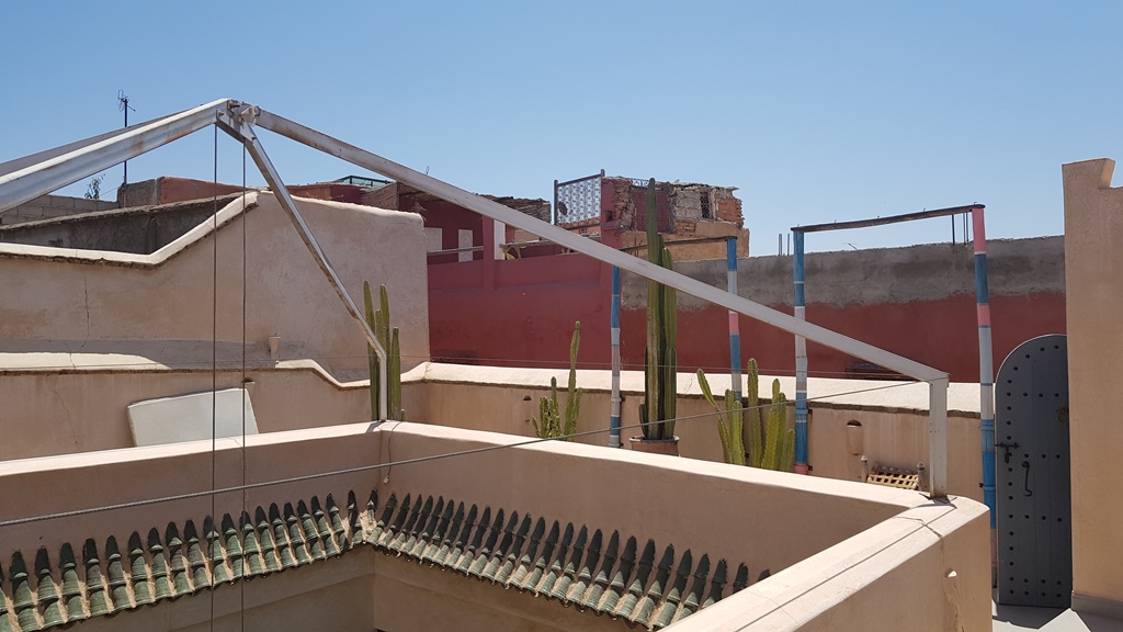 Pas très loin du souk et de la place Jemaa el fna, c’est un petit Riad avec 3 chambres 2 petits salons et une cuisine.